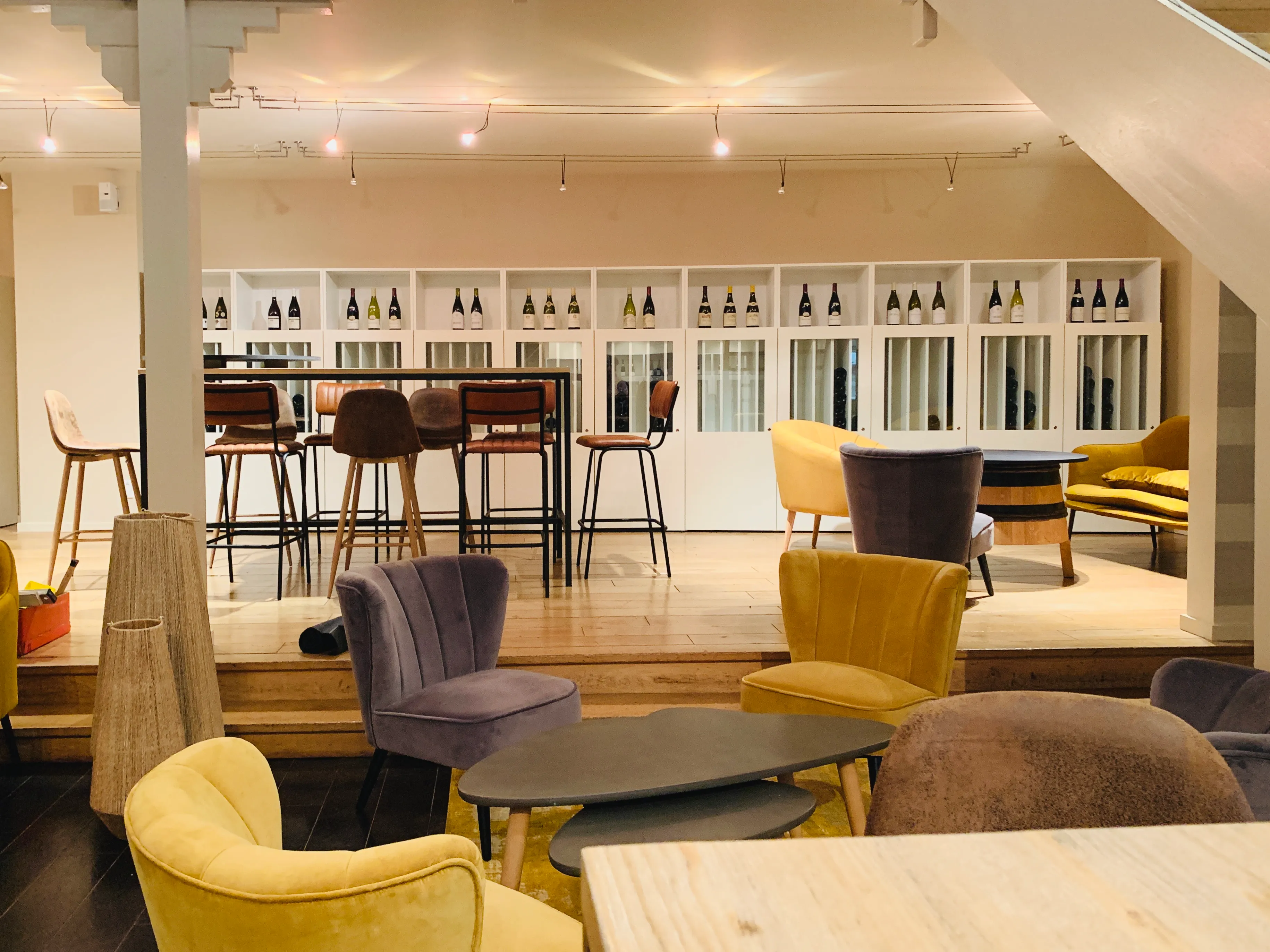 Aménagement intérieur d'un espace événementiel de restauration, la Comédie du vin est un restaurant-bar à vin convivial où le bien-être des convives est la priorité.