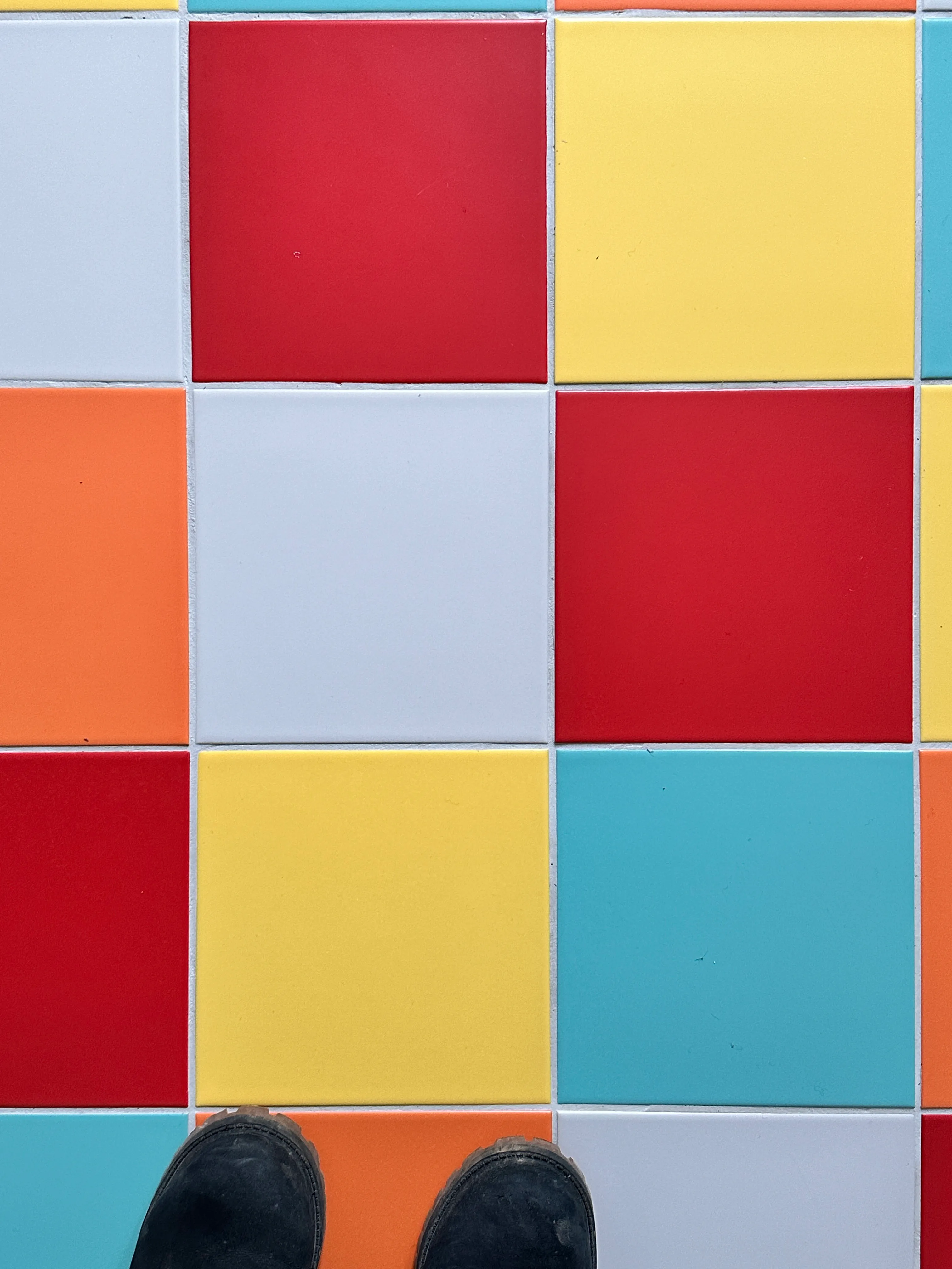 - Restructuration de la salle de bain : Initialement composée d'une douche simple avec des meubles vasques de part et d'autre, le choix a été de moderniser complètement cet environnement. Ainsi, une baignoire et une douche à l'italienne sont installées, des rangements complémentaires ont été construits et au sol, des carreaux de couleurs-vives apportent un esprit décalé qui convient à tous les enfants de la famille.